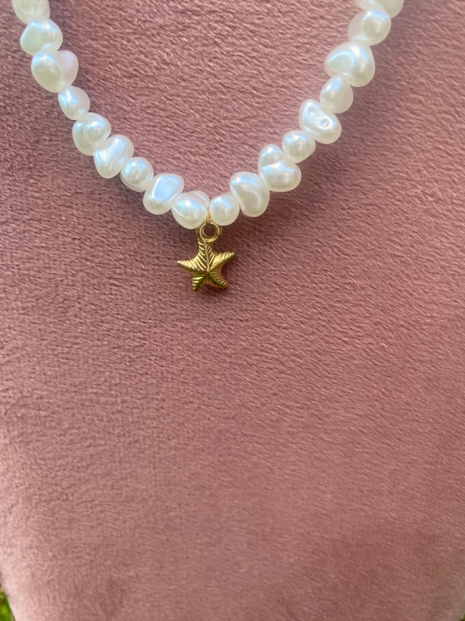 Parel ketting met goudkleurige zeester