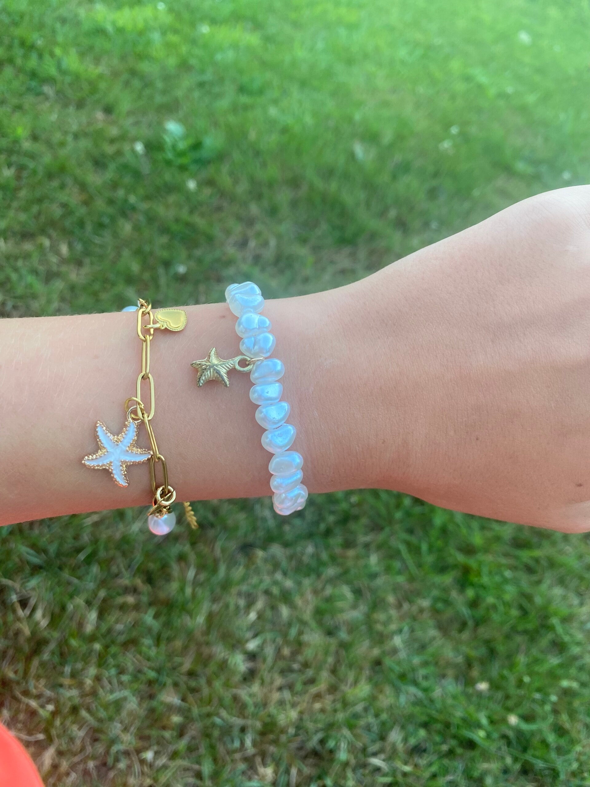 Parelarmband met goudkleurige zeester